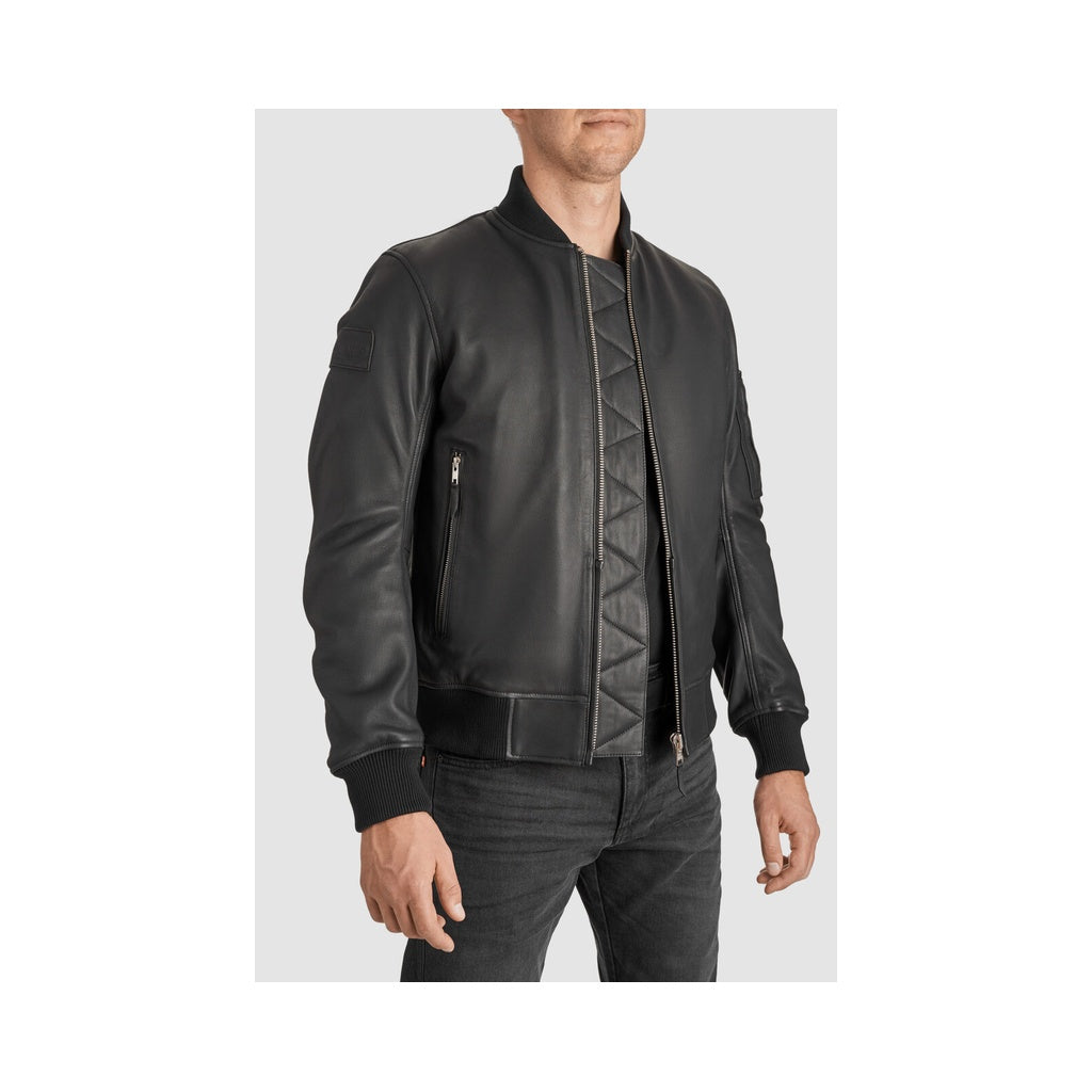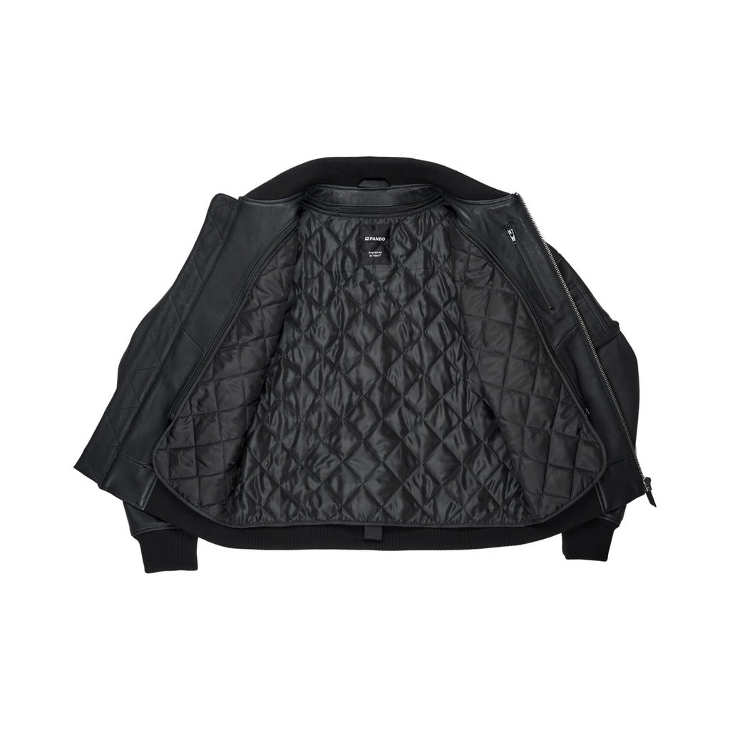 If you think bomber jackets are a bit old-school, Pando is here to prove you wrong and remind you that they’ve never gone out of style—and they don’t plan to. This men’s motorcycle jacket will allow you to ride not only safely but also in style. It is made of the highest quality goat black dull semi-aniline leather, which is not only extremely soft but also durable. Aniline leather is considered the most natural and pure form of leather, as it retains the natural grain and characteristics of the hide.