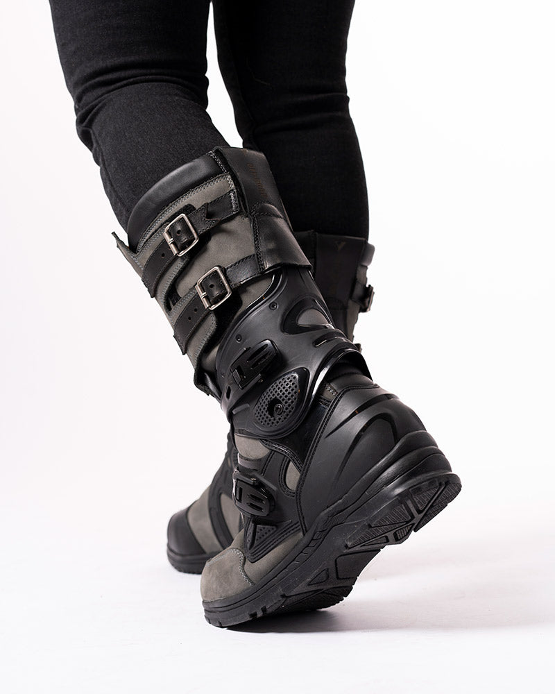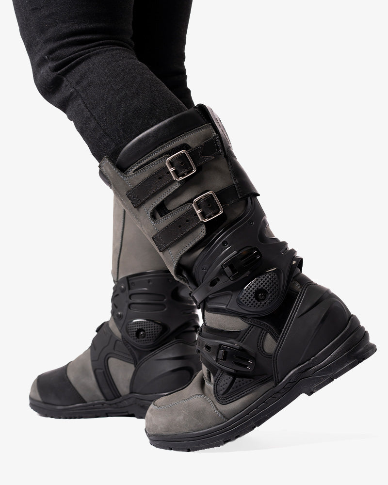 Off-road mootorrattasaapad, mis on loodud pakkuma maksimaalset kaitset, vastupidavust ja mugavust nõudlikel radadel. Valmistatud kvaliteetsest nahast, neil on kahe tihedusega libisemiskindel tald, tugevdatud võtmekohad ning pannal ja takjakinnitus kindlaks sobivuseks. Pahkluuosa hingetehnoloogia parandab liikuvust, samal ajal kui hingav sisemus ja polsterdatud sisetald tagavad mugavuse igal seiklusel.