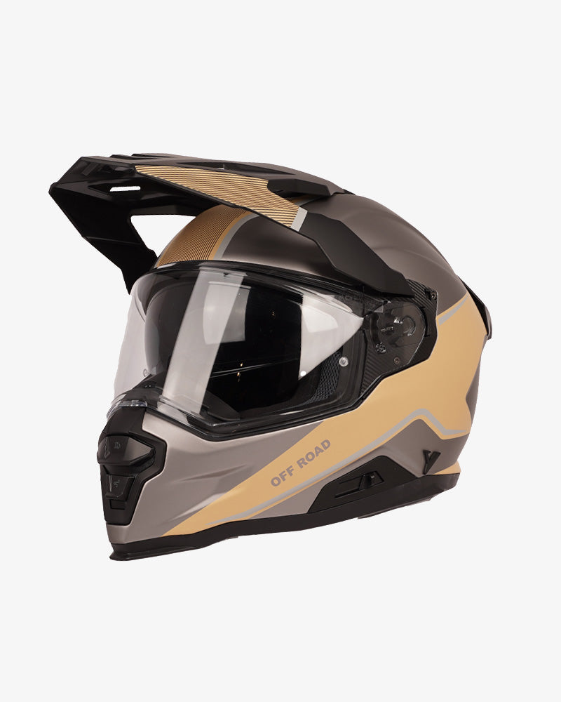 Side angle By City XTreme adventure helmet beige black off road touring design