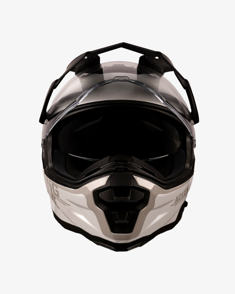 Front view By City XTreme white adventure motorcycle helmet with visor