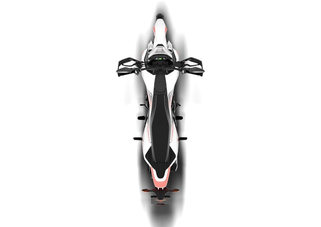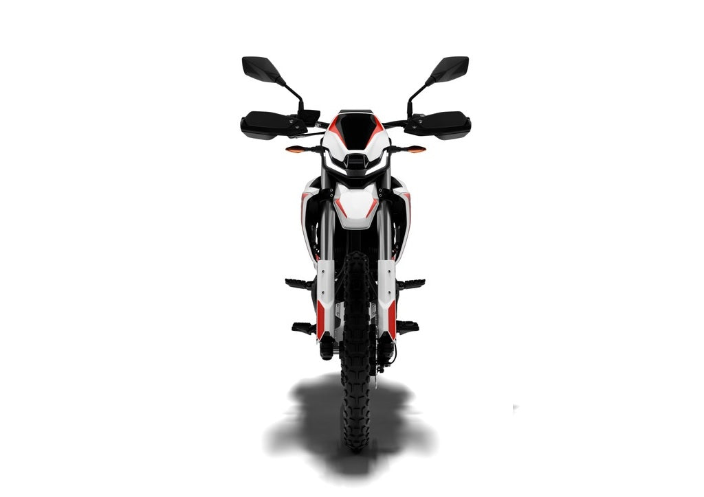 The robust steel frame, aluminum subframe and swingarm, long-travel suspension, and 21' front / 18' rear wheels underline its serious off-road character, while maintaining stability and comfort on the road.