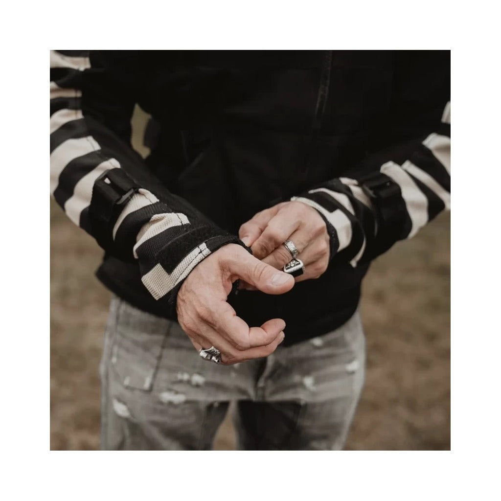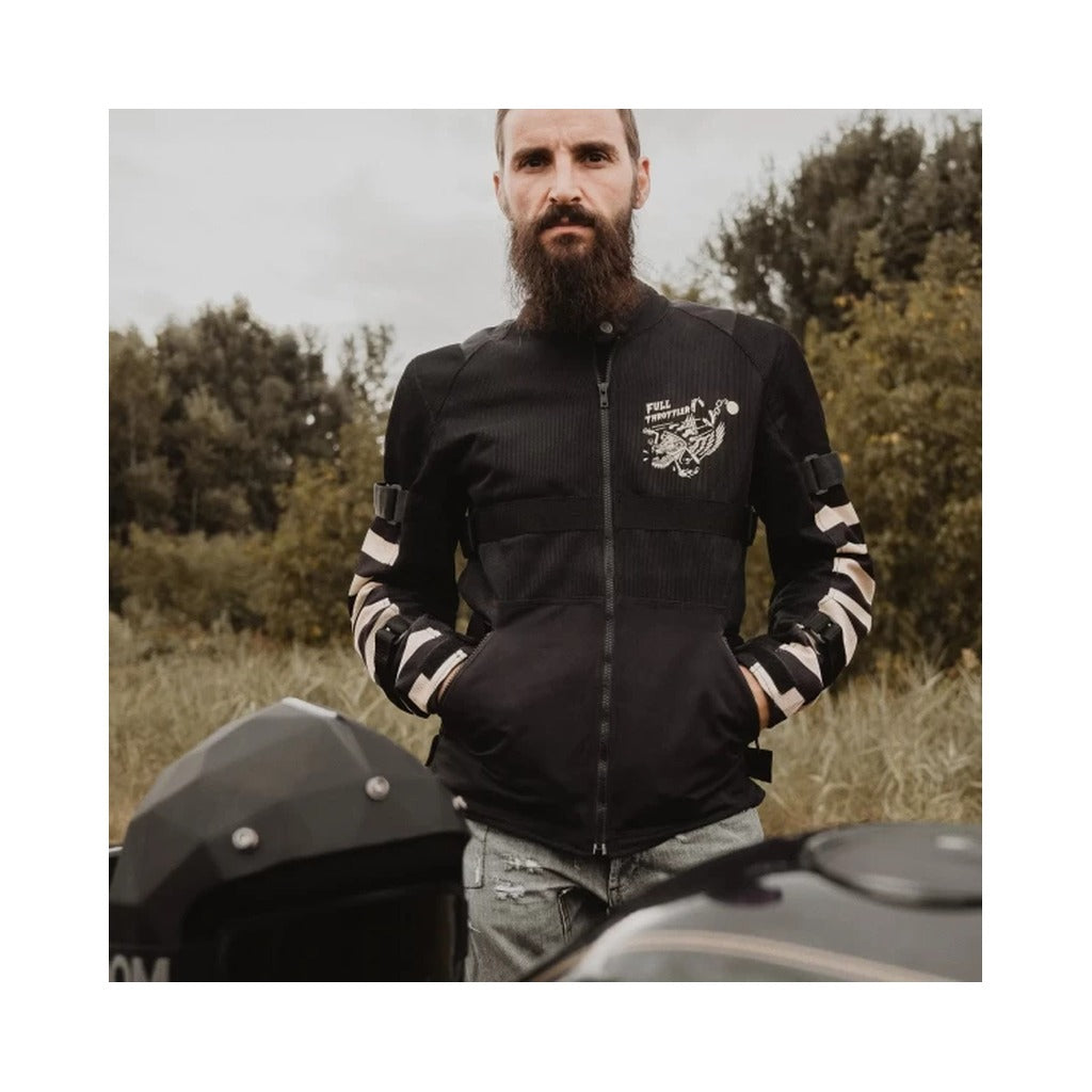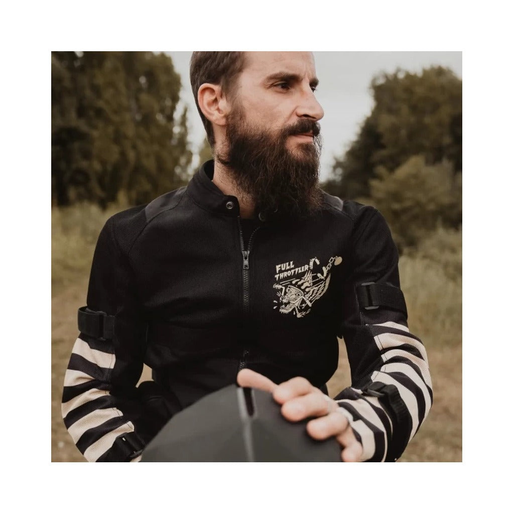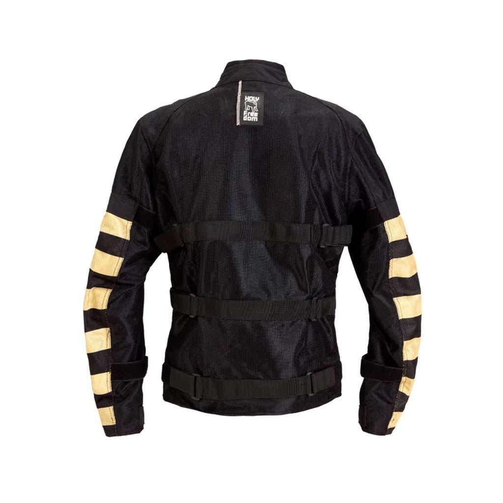 Holyfreedom jaka motocikla lietošanai.SASTĀVS:• 100% poliesters ĪPAŠĪBAS:• Jaka pilnībā elpojoša tīkliņa materiālā.• Augstas izturības audums.• Holyfreedom® sertificētas aizsargkabatas, noņemamas muguras, elkoņu un plecu daļās.• Iekļautas aizsardzības un muguras aizsargs.• Velcro siksnas gurniem un rokām regulēšanai.• Svītrainas piedurknes.SPECIFIKĀCIJAS:• Izmēri: S - M - L - XL - XXL - XXXL• Sertifikācija: EN 17092-4:2020• Klase "AA"IEPAKOJUMĀ:• 1 x HOLYFREEDOM® jaka• 1 x Muguras, elkoņu un plecu aizsargu komplekts• 1 x pakaramais• 1 x caurspīdīgs putekļu necaurlaidīgs maisiņš