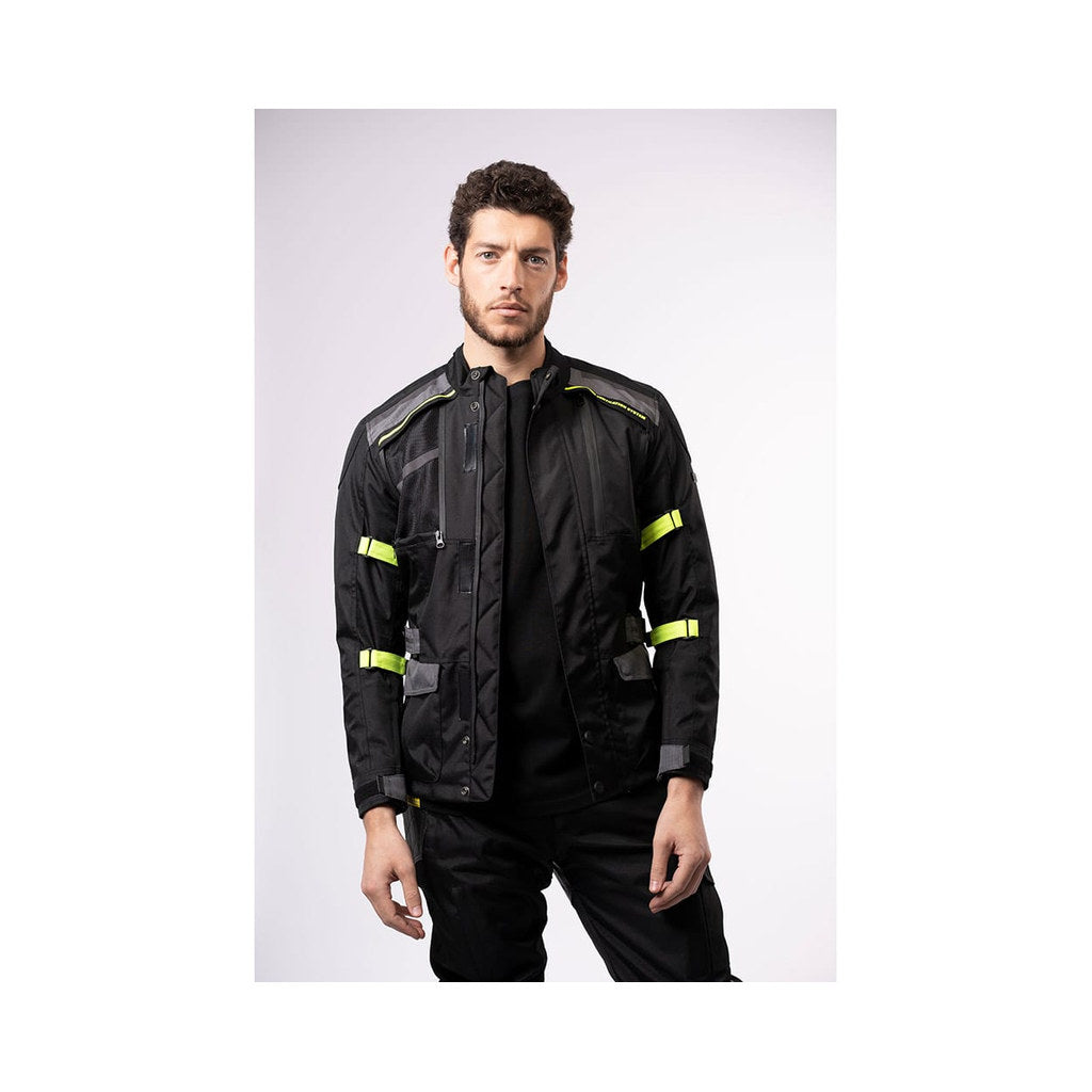 Klasiska stila ūdensnecaurlaidīga jaka ar atstarotājiem, noņemamiem elkoņu un plecu sargiem. Dēļ iestrādātajiem atstarotājiem labi pamanāma diennakts tumšajā laikā.