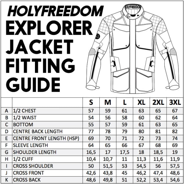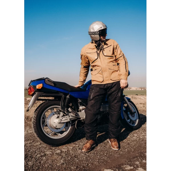 Holyfreedom tehniskā ceļojumu jaka SASTĀVS: Ārējais slānis: 100% ūdeni atgrūdošs kokvilnas audums Iekšējais oderējums: 100% poliesters Noņemams ūdeni atgrūdošs iekšējais oderējums: 100% poliesters Noņemams iekšējais veste: 100% poliesters ar vieglu pildījuma šūšanu ĪPAŠĪBAS: 3/4 garums Tehnisks audums motocikla lietošanai. Tīrs, būtisks dizains slēpj daudzus tehniskus risinājumus tūrisma vajadzībām. 7 atveres ventilācijai. Piedurknes, gurni, jaku apakša un aproces ar Velcro regulēšanu. 5 ārējās kabatas un 4 iekšējās kabatas. Noņemams vēju necaurlaidīgs apkaklis. Noņemams šūts oderējums. Noņemams ūdeni atgrūdošs Reissa™ oderējums. Pagarinātas ieliktņi lielākai kustību brīvībai elkoņos un plecos. Universālas iekšējās kabatas plecu un elkoņu aizsargiem. Iekšējā kabata Holyfreedom® sertificētam muguras aizsargam. Visi rāvējslēdzēji YKK. Centrālais rāvējslēdzējs ar dubulto slīdni. Komplektā aizsargi. Jaka var tikt pieslēgta HolyFreedom ‘EXPLORER’ biksēm, pateicoties speciālam iekšējam rāvējslēdzējam mugurpusē. TEHNISKIE DATI: izmēri: S - M - L - XL - XXL sertifikācija: EN 17092-4:2020 IEKĻAUTS: 1 x HOLYFREEDOM® jaka 1 x pakaramais 1 x putekļu necaurlaidīgs TNT maciņš 1 x aizsargu komplekts. Lūdzu, sazinieties ar mums, ja jums ir kādi jautājumi info@dude-bikes.com