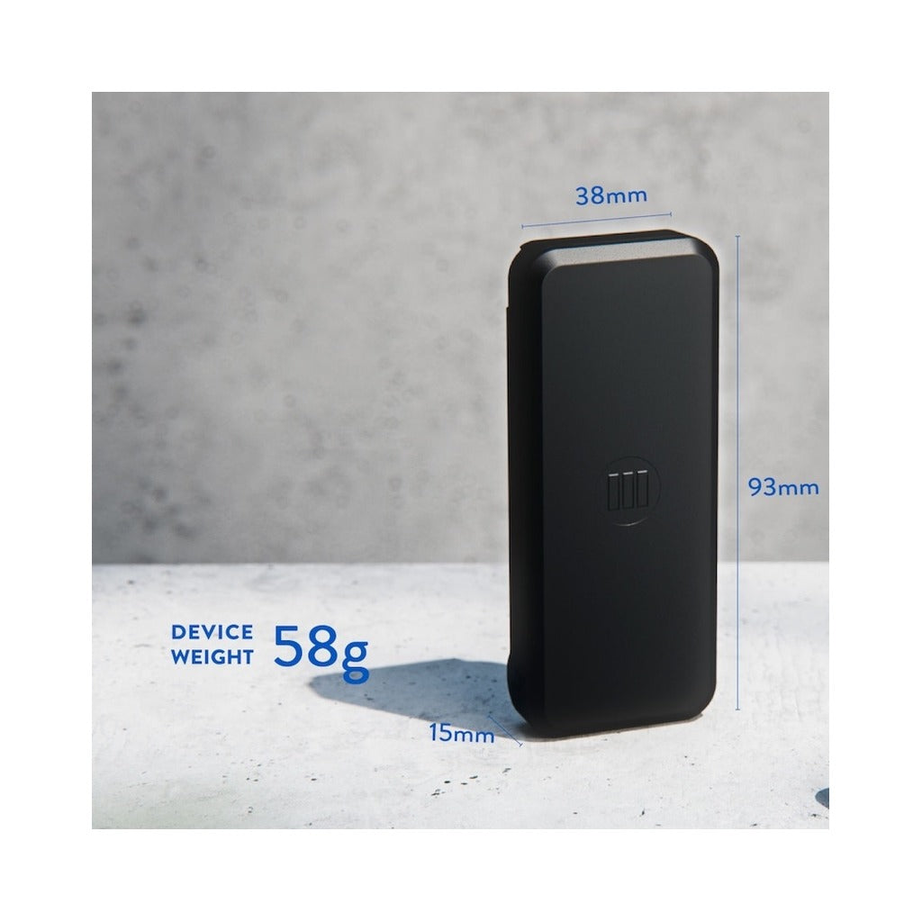 Monimoto 9 GPS tracker size and weight dimensions shown